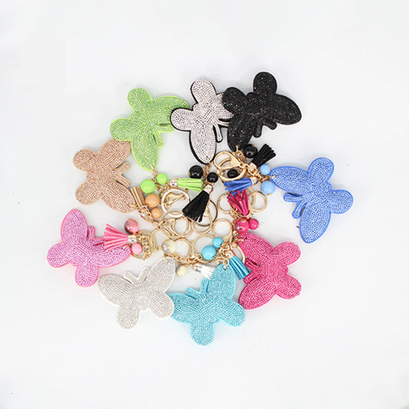 Fashion Rhinestone cute butterfly shape 4 color leather key chain Charm Pendant Crystal Purse Bag women Key Chain key rings Gift