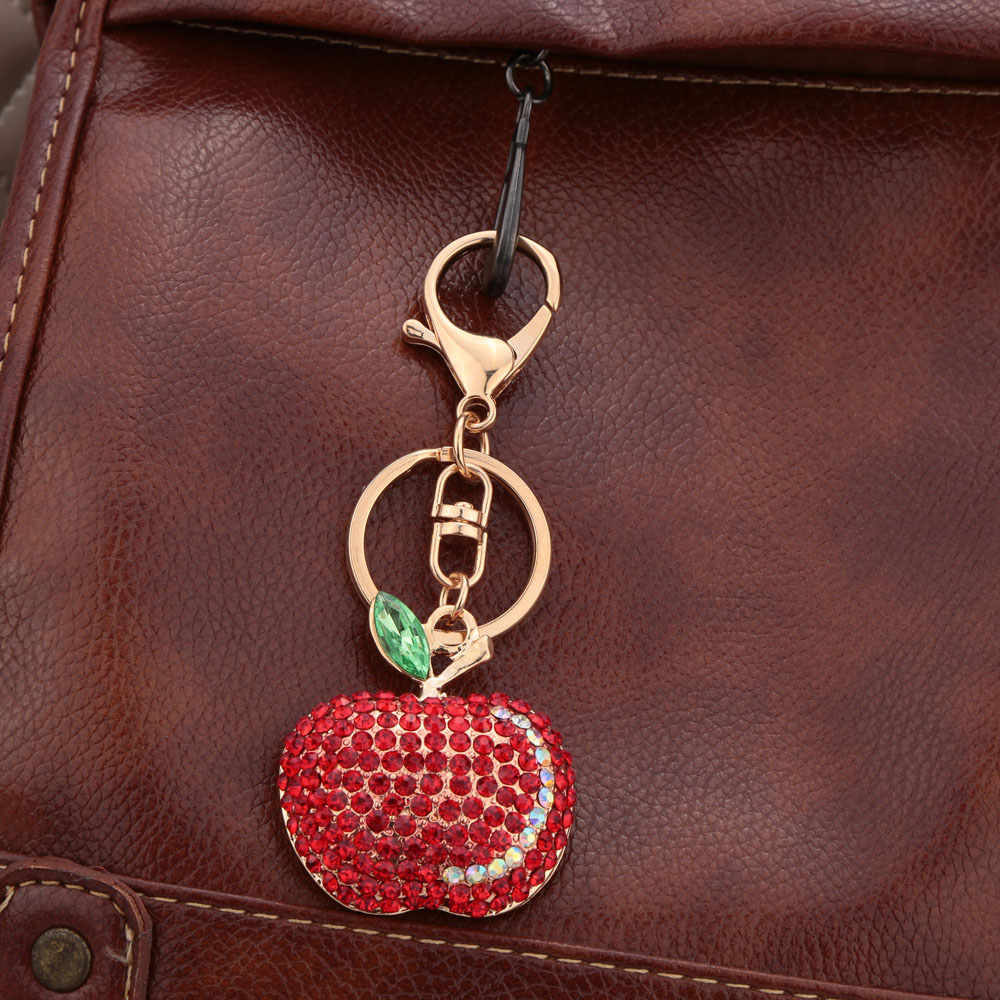 Fashion Shining Crystal Rhinestone Cute Fruit Apple Key Ring Zinc Alloy Fashion Car Key Chain Purse Bag Charm Accessory Gift