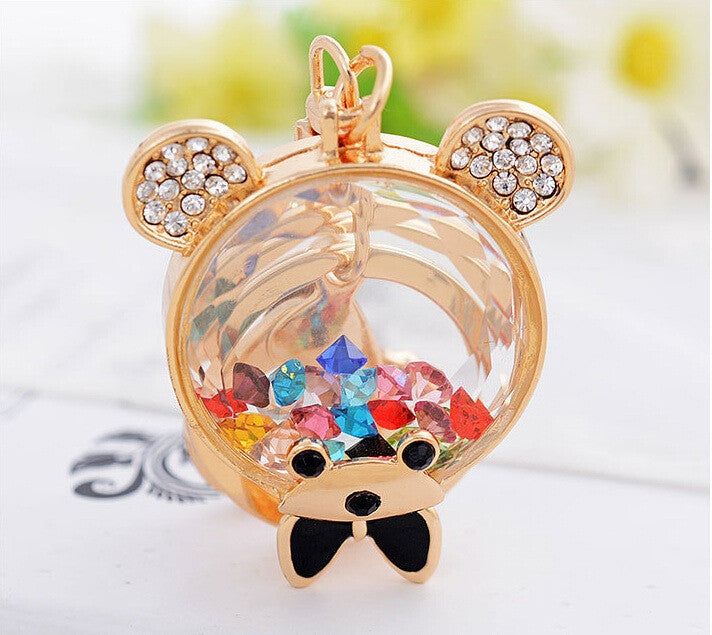 2016 New Design Fashion Gold Plated Rhinestone Bear Charm Pendant Crystal Purse Bag Keyring Key Chain Gift