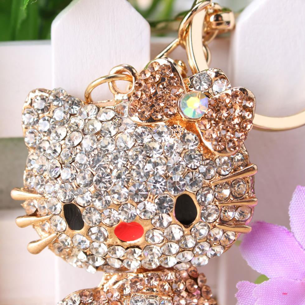 Butterfly Gold Hello Kitty Cat Cute Crystal Charm Purse Handbag Car Key Keyring Keychain Party Accessories Birthday Gift