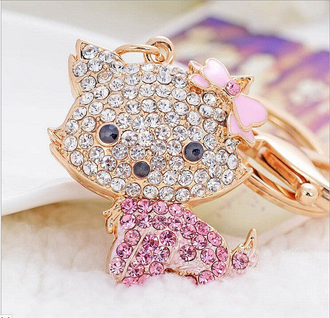 Butterfly Purple Pink Blue Cat Cute Crystal Charm Purse Handbag Car Key Keyring Ring Keychain Party Birthday Gift
