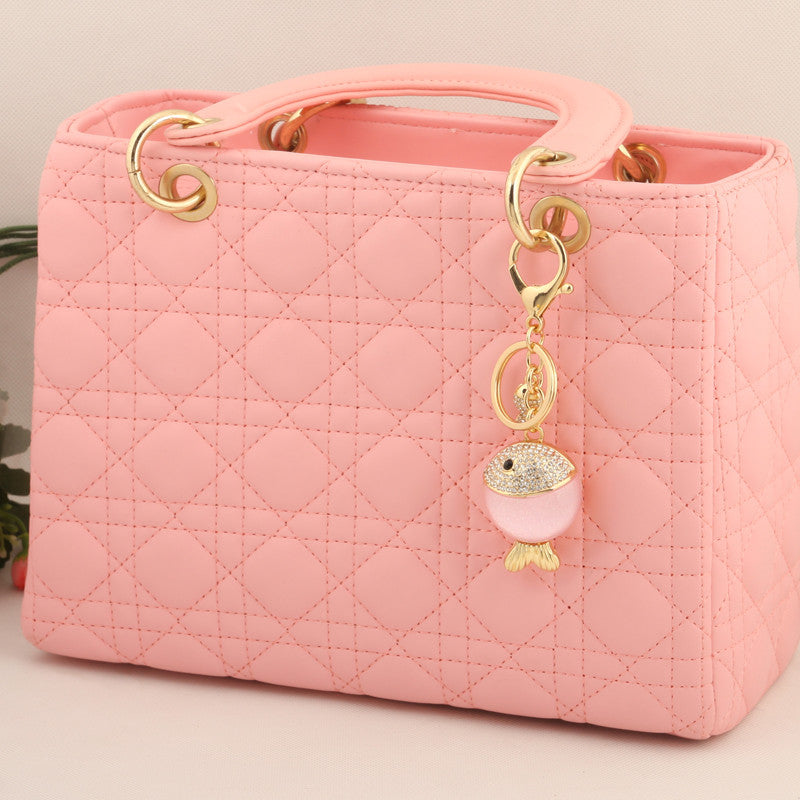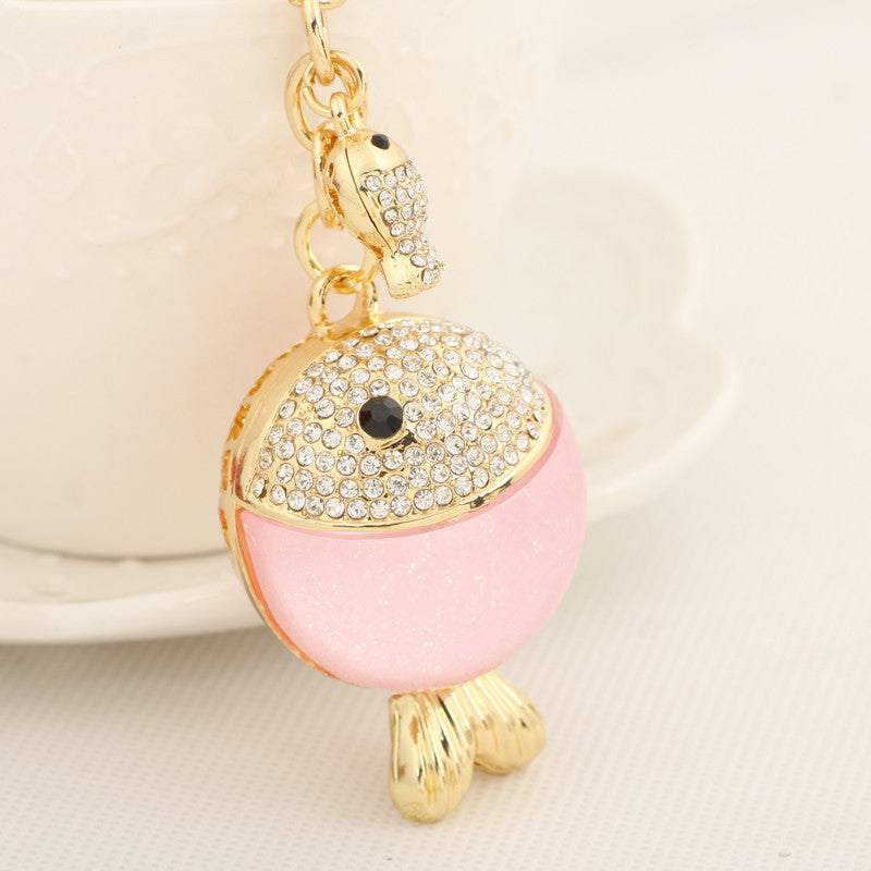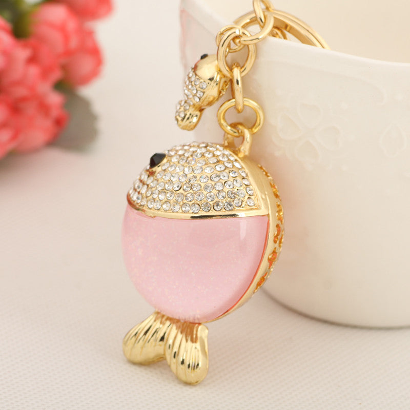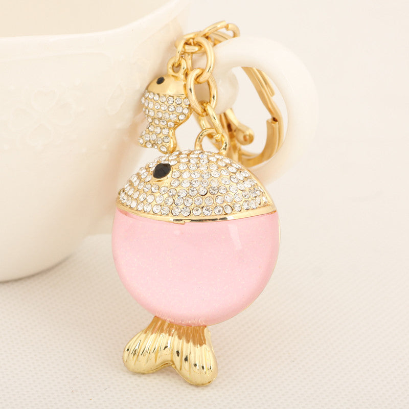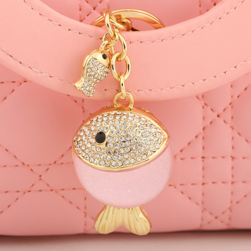 Cute Rhinestone Stone Double Fish Keychain Fashion Crystal Animal Metal Key Chain Ring for Women Gift Bag Purse Charm Pendant