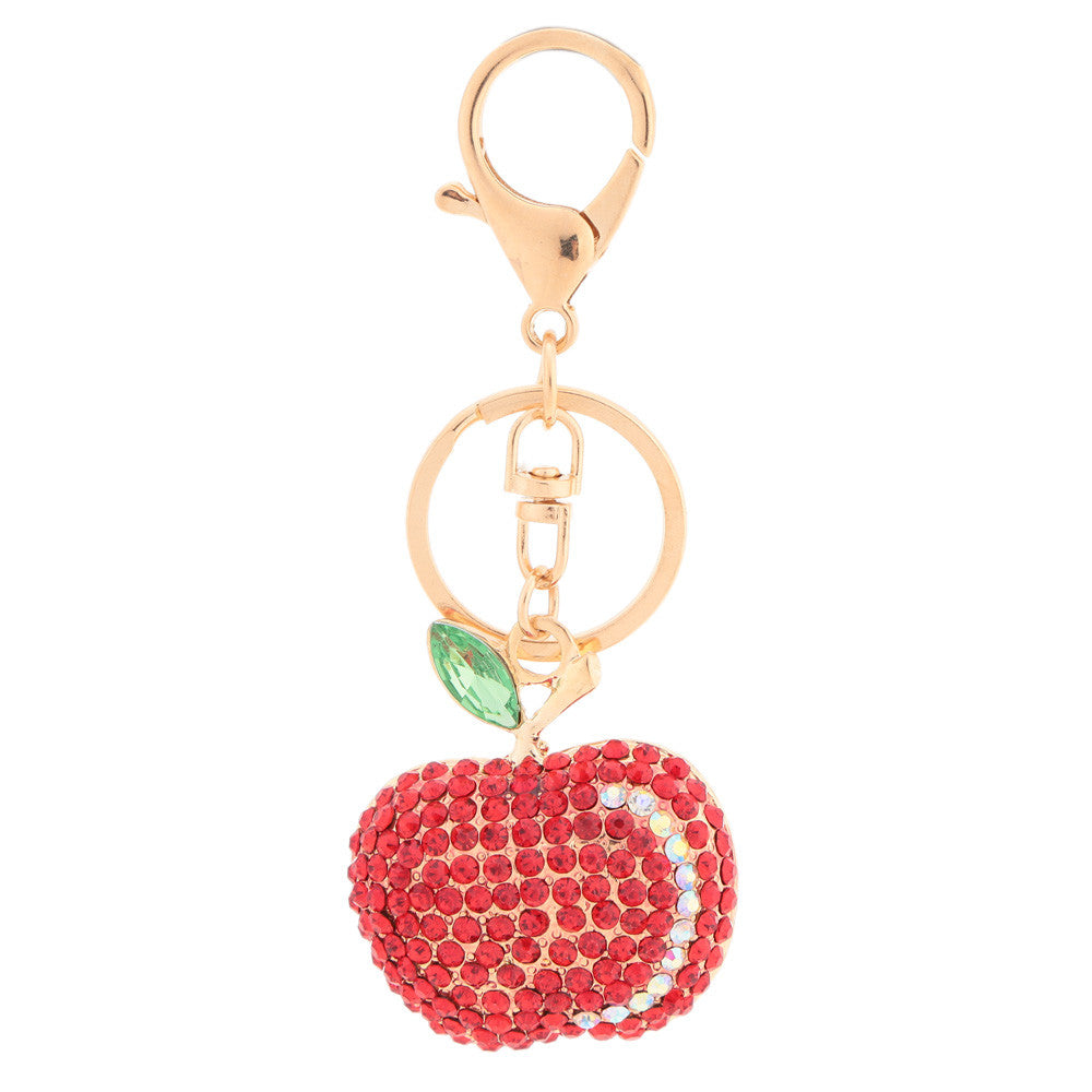 Fashion Shining Crystal Rhinestone Cute Fruit Apple Key Ring Zinc Alloy Fashion Car Key Chain Purse Bag Charm Accessory Gift