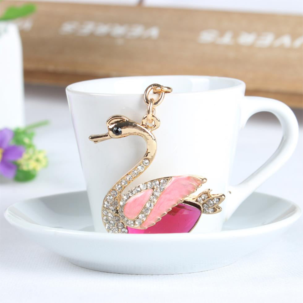 Goose Swan Duck Crown Lovely Cute Crystal Charm Purse Handbag Car Key Keyring Keychain Party Wedding Birthday Gift