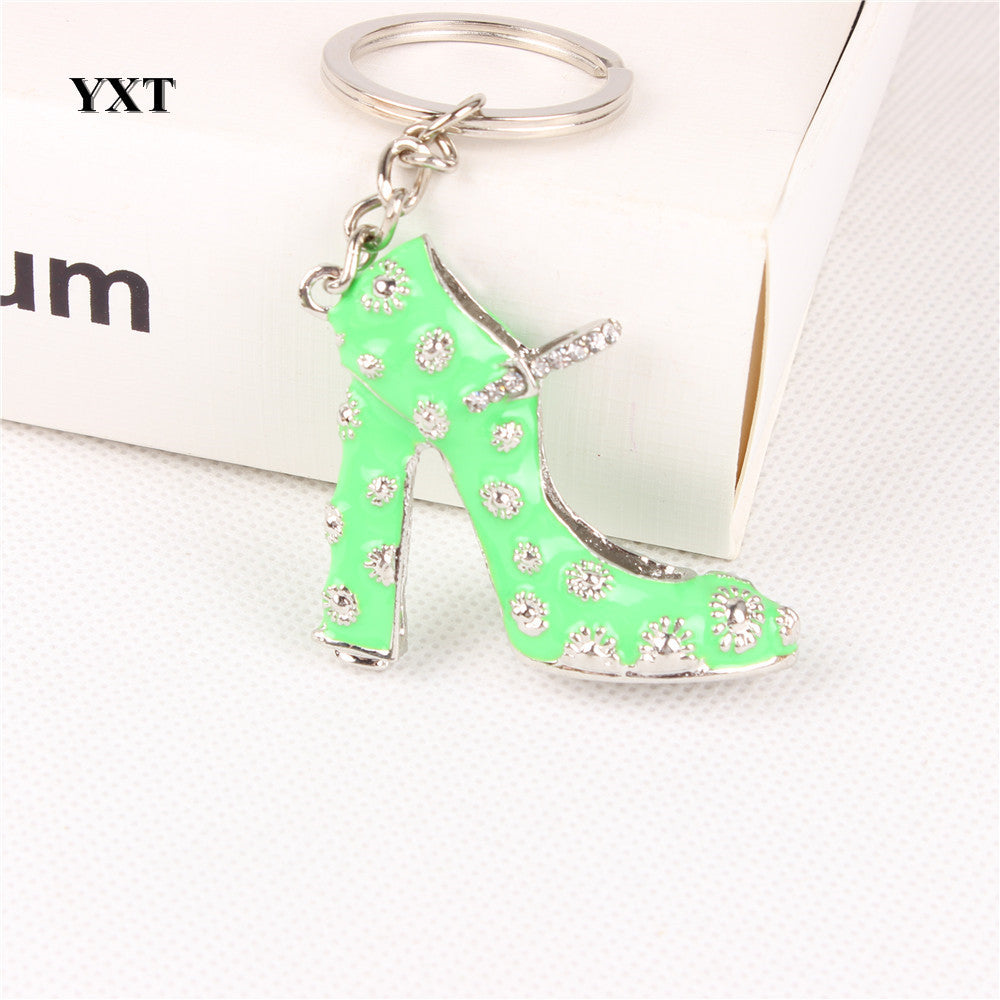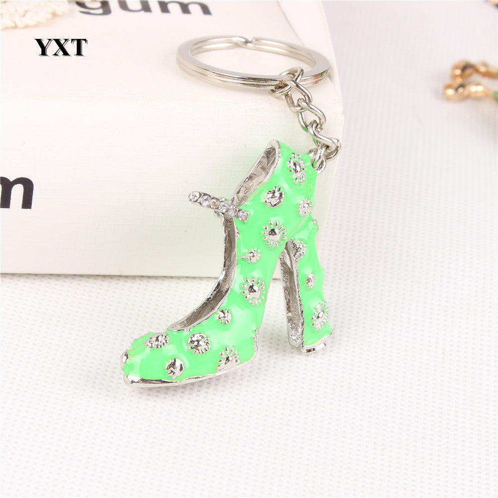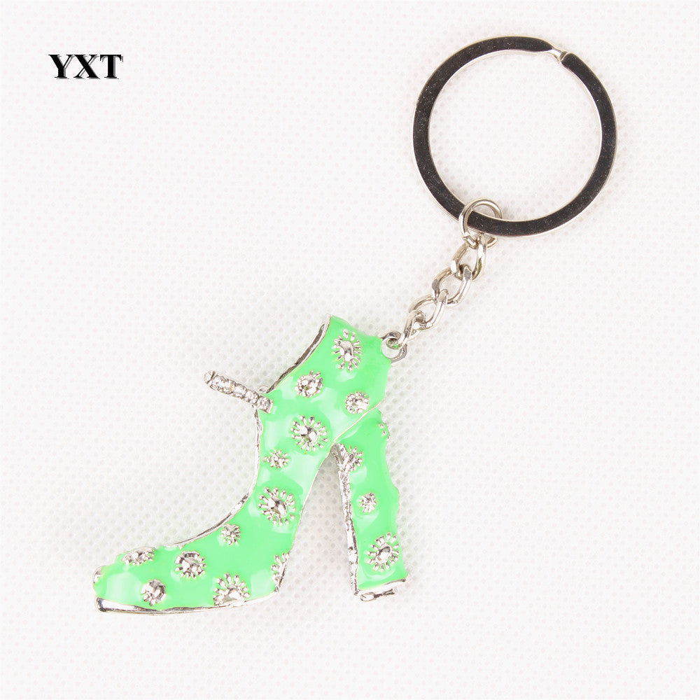 Green High-Heel Shoe Women Girl Crystal Charm Pendant Purse Handbag Car Key Keyring Keychain Creative Delicate Gift