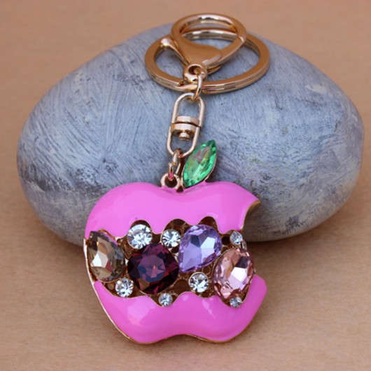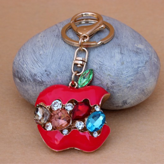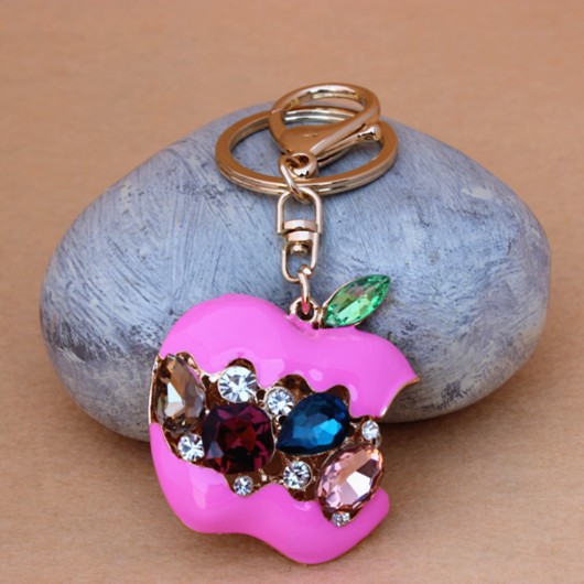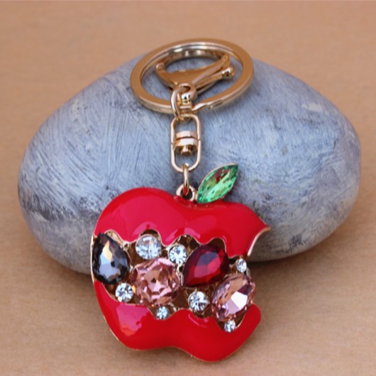 Hot Crystal Red Apple Keychain Rhinestone purse Bag Charm Pendant Key chain Key Ring