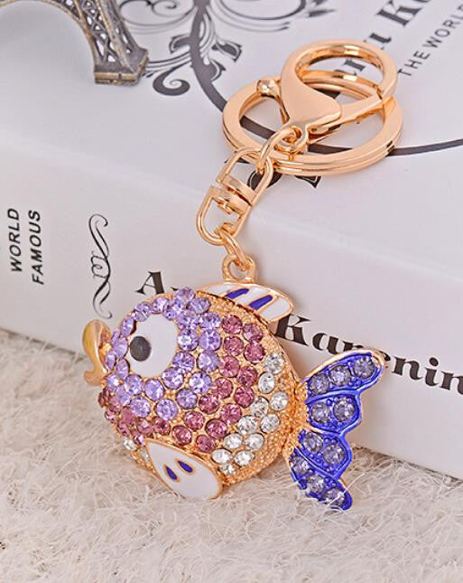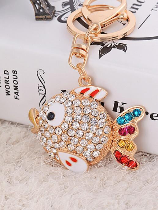 Lovely Goldfish Fish Green Cute Crystal Rhinestone Charm Pendant Purse Car Key Ring Keychain Party Favorite Gift High-quality